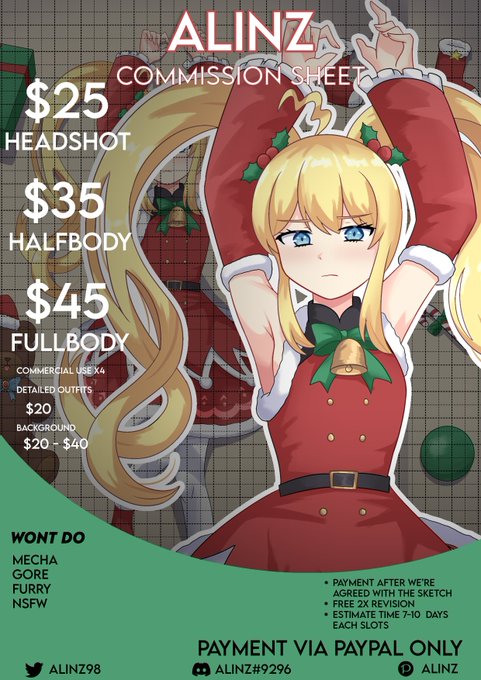 (Retweets are really apreciated! 💖💖) Hello! ✨✨ I'm opened commission for this January💖 if you interested feel free to DM me here or discord AliNZ#9296 Thank you~ #commissionopen #commissions #CommissionSheet #Art #ArtCommission #Illustrations #ArtistOnTwitter