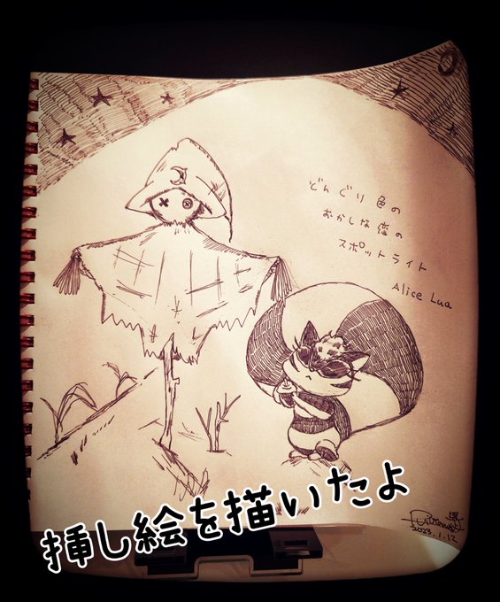 明日の新作ストーリーライブ『どんぐり色のおかしな恋のスポットライト🐿️💡』の物語の挿し絵を描いたよ✏️ どんなストーリーか想像できるかな🌜️? 今年の目標はたくさん絵も描くことだからね😁 明日歌守は東新宿の会場で、21:15~出演です! 配信チケットはコチラから!累⏬ twitcasting.tv/mahiru20101106…