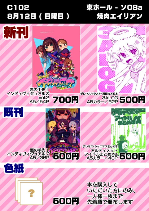 ◎あなたのサークル「焼肉エイリアン」は 日曜日 東地区 “ソ” ブロック 08a に配置されています。 スペースいただけました‼️ 悪の手先インディヴィジュアルズ本Vol.2が出ます🥳