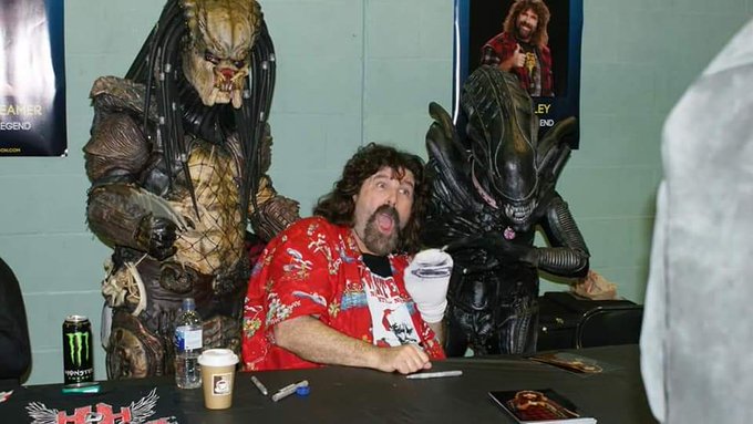 Really missing conventions like @walescomiccon recently. Hopefully we can get back to normality soon and get epic moments like meeting the amazing @RealMickFoley and other people again! #comiccon #mickfoley #cosplay #alien #predator #whereamask #walescomiccon