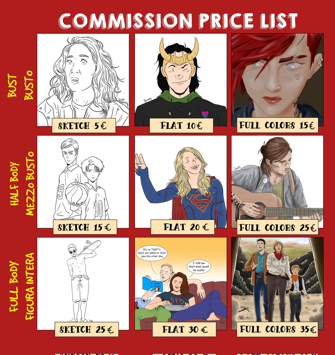 🖌️ED ECCOCI CON IL NUOVO LISTINO PREZZI! Ho aumentato qualcosa perché i tempi sono quello che sono, ahimè. LE COMMISSIONI SONO APERTEEEE ✨ Here we go with the new price list! All the infos are written down here! #COMMISSIONSOPEN 👇👇👇