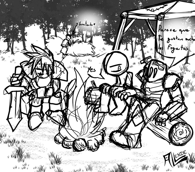 || Inktober dia 28: Camping || Bueno ni alcance a hacer un trazado limpio por cansancio mas que nada, igual aproveche para testear una nueva firma #inktober #inktober2022 #inktober2022day28 #oc #digitalartist