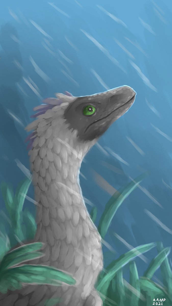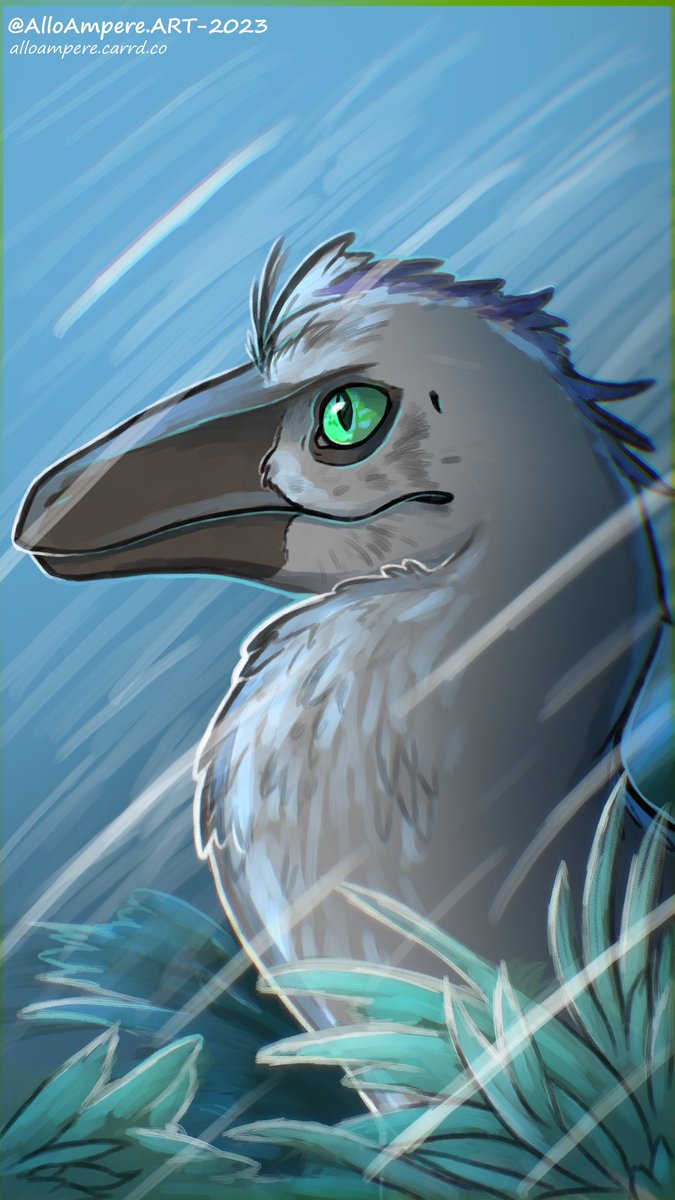 Back alot sooner than i thought, Here take this reference picture for a new character i just made. She tends to get a little... Violent. It's a parody on how Overpowered the Galimimus is in The Isle: #dinosaur #digitalpainting #art #paleoart #characterdesign