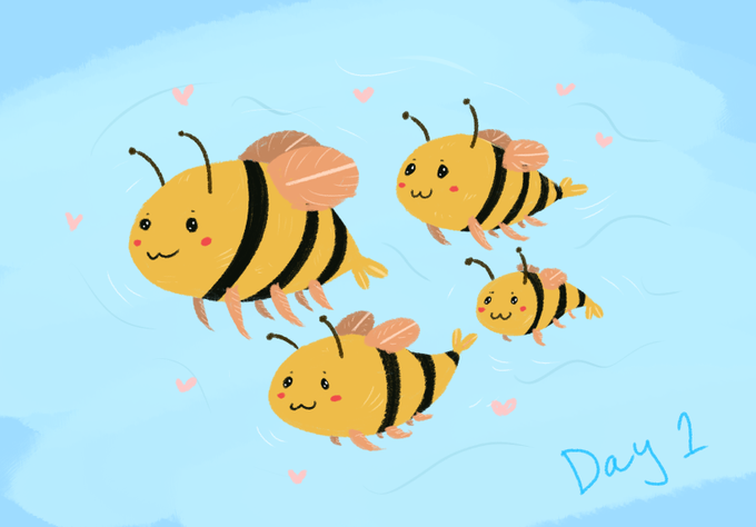 A little doodle for Day one of Mermay! the prompt was workers, so here are some lil worker bees! 🐝🌸 #mermay2022 #mermay #bee