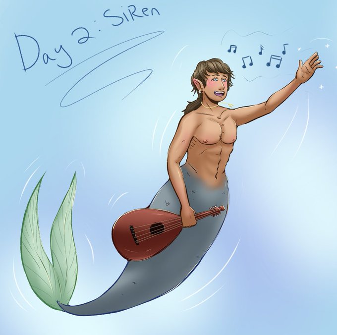 Mermay day 2: Siren! I decided to draw Jaskier! Ive read so many fics with Siren!Jaskier, that it just felt like a perfect fit! - With an extra lil geralt doodle! #mermay #geraskier #jaskier