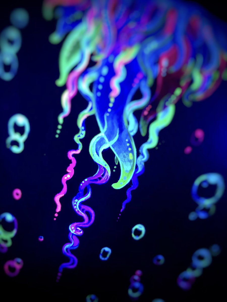 \明日8月9日15時より開催/ ブラックライトで作品を光らせる展示会【#ルミナスアートラボ】 詳細はこちら→@luminous_artlab 今回は新作2点、旧作1点を展示いたします💀🙌 いつもとちょっと雰囲気を変えて描いてみました!是非見に来ていただけるとうれしいです〜🧪✨光るグッズも持っていきます✨ twitter.com/luminous_artla…