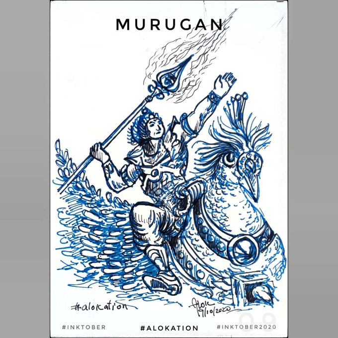 0 6 Murugan Day 9 of #inktober #inktober2020 #inktoberday9 #alokation #alokationArt #art #sketch #drawing #artist #alok #ArtistOnTwitter #SanatanDharma #hinduism #indianmythology #india #mythology #artwork #throw #murugan #kartikeya #skanda #vel #shakti #spear #peacock #tamil #tamizh 20/10/10 18:01