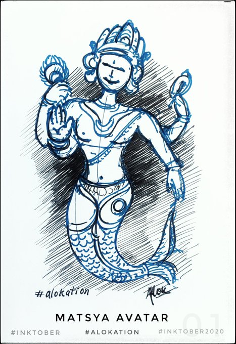 2 4 Matsya Avatar Day 1 of #inktober #inktober2020 #InktoberDay1 #alokation #alokationArt #art #sketch #indian #mythology #fish #matsya #avatar #vishnu #india #ArtistOnTwitter #artistsontwitter #artist #day1 #alok #drawing #PenandInk 20/10/02 05:24