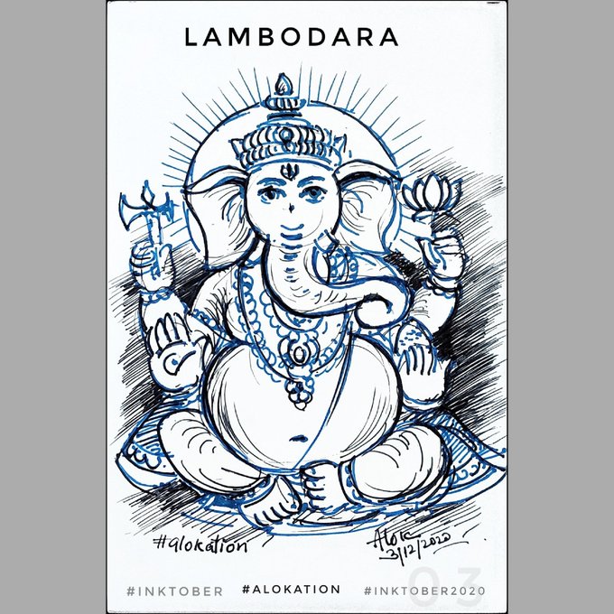 0 3 Lambodara Day 3 of #inktober #inktober2020 #InktoberDay3 #alokation #alokationArt #art #sketch #indian #mythology #ganesha #vinayaka #lambodara #india #ArtistOnTwitter #artistsontwitter #artist #day2 #alok #drawing #artist #PenandInk #SanatanaDharma #bulky #hinduism 20/10/04 03:21