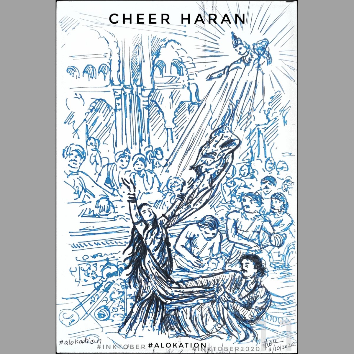 Cheer Haran Day 11 of #inktober #inktober2020 #inktoberday11 #alokation #alokationArt #art #sketch #drawing #artist #alok #ArtistOnTwitter #SanatanDharma #hinduism #indianmythology #india #mythology #artwork #disgusting #cheerharan #mahabharata #draupadi #krishna #pandava
