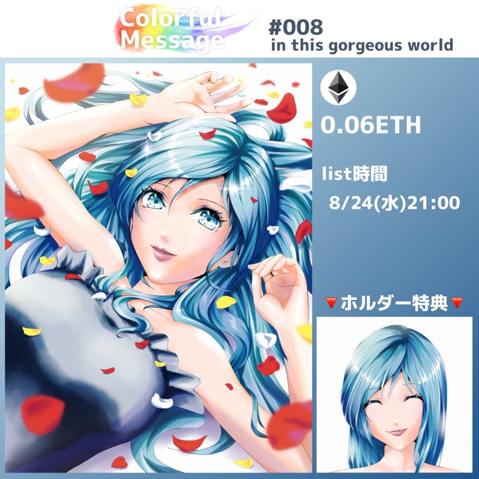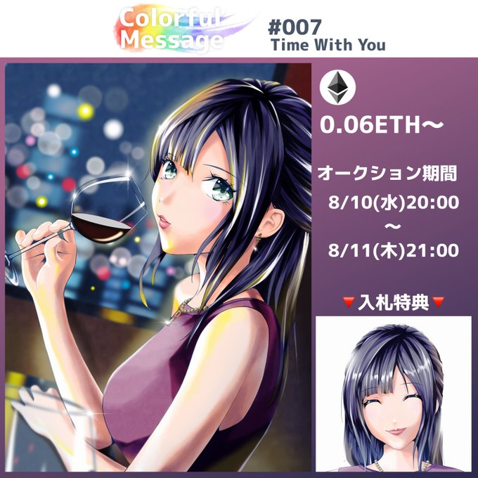 🌟新作🌈 完売中コレクションColorful Messageの#007をオークション販売! ✅オークション期間:8/10(水) 20:00~8/11(木) 21:00 ✅価格:0.06ETH~ ✅入札特典あり opensea.io/assets/ethereu… Description:Time With You あなたといる大切な時間 #NFTJPN #NFTJapan #nftart #NFT