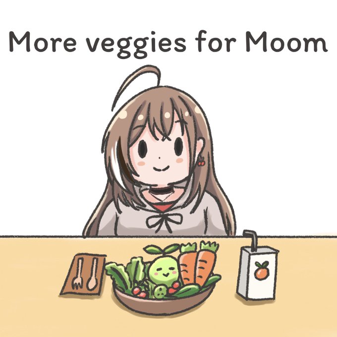 [Moom Month Day 23: More veggies for Moom] Since Mumei mentioned that she hasn’t been eating much vegetable recently, I drew Mumei with a salad bowl today! #drawMEI #ムメ絵 twitter.com/alpha_cas_art/…