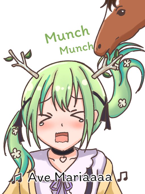 [quick doodle] Fauna singing Ave Maria while getting her hair munched by a horse. Her Karaoke stream is such a peak content. 😂😂😂 #FineFaunart