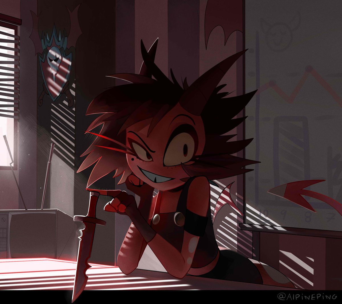 I don't want this to go to waste so, here's an earlier version of Vanny's pose that I decided to completely scrap near completion. twitter.com/AlpinePing/sta…