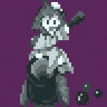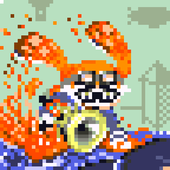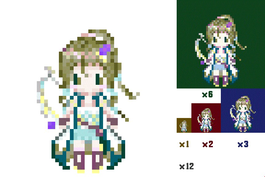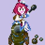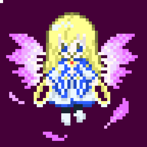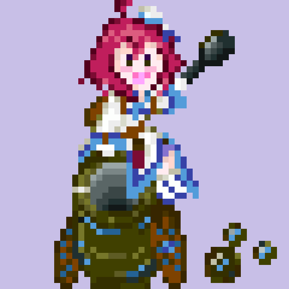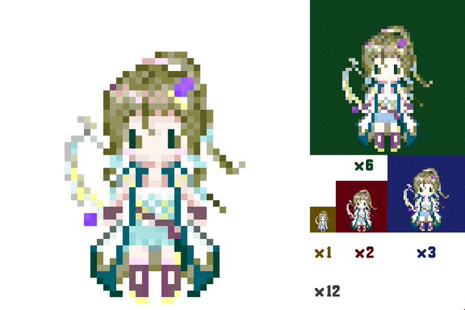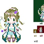 #ドット絵 #フィリス・ミストルート 着色まで ・色多すぎてまとまってない、明度彩度調整して目立たせたたいトコそうでないトコ意識する ・背景が一定でないとした場合の縁取り調整ってどうするのだろうか ・ボージングイマイチ、これは次回以降。 ・ドット絵のアップロードてどうやるんだコレ