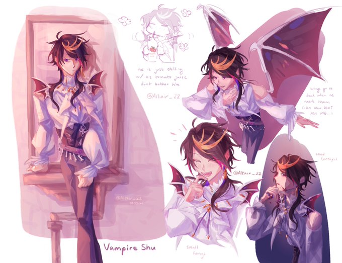 shu except hes a vampire and no one knows and i got the idea SOLELY FROM THE LITTLE WINGS IN HIS DESIGN... why has no one thought of this yet #YaminoArt