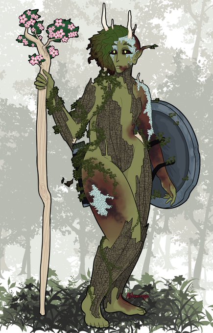 another new character! a very healthy dryad out in search of a cure for their equally healthy home. their name is petrichor and they're a peace cleric! #dnd #dndart #oc #originalcharacter #CharacterDesign #dungeonsanddragons #fantasyart