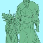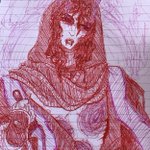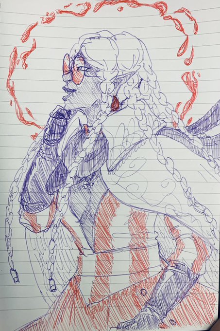 a couple doodles of my #eldenring oc dredge after he inherited the flame, and of my mans dr. marianna cross <3 #DnDcharacter #dndart #bloodhunter
