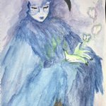 watercolor and acrylic painting of my character, bluebird. 🥰 really missed painting, enjoying getting back into it. thinking of opening painting commissions!! #fantasyart #dnd #dndart #DnDcharacter #druid #changeling #watercolor
