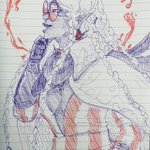 a few doodles - a biker rocker demon babe as a nod to meatloaf for his passing (titled "like a sinner before the gates of heaven" ofc), a little zadkiel stretch, and petrichor and @meowrai's babe!! theyre fwiends #oc #originalcharacter #fantasyart #dndart