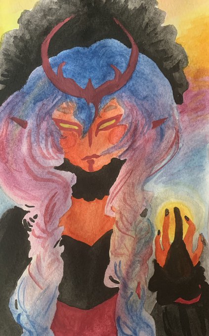 The Sacred Dusk That Is The Limen Of Asylum And Abyss, or dusk for short. quick watercolor doodle during their game last night #dnd #dndart #twilightcleric #DnDcharacter