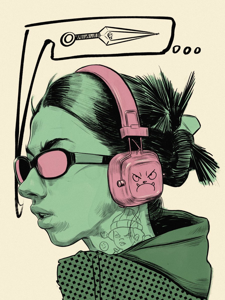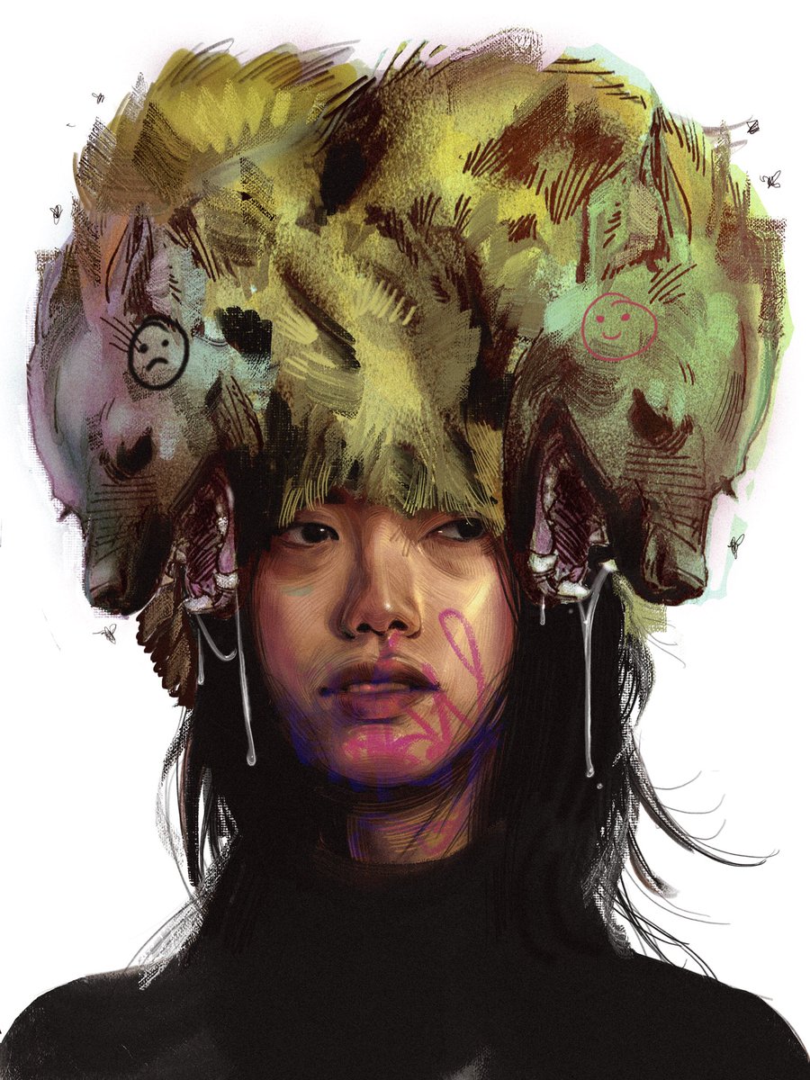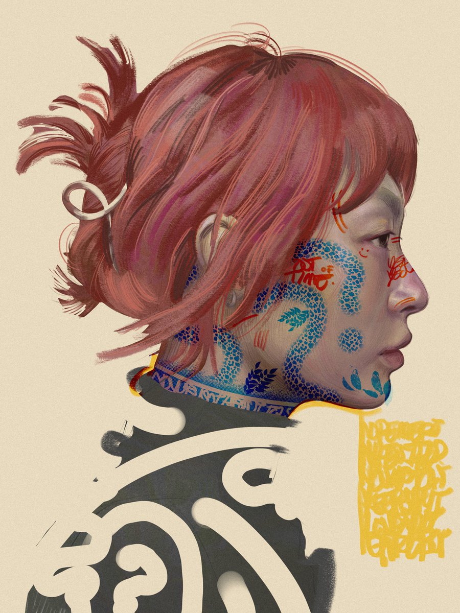 More traditional in year 28. Gouache, color pencil, ink, and digital on card stock.