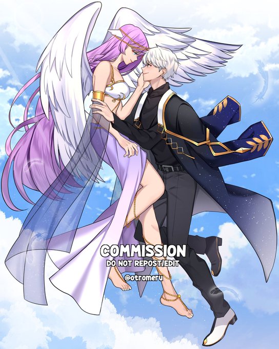 ⚠️ MC Aly x Solomon Perhaps an angel and a human can have a happy ending to their love story after all? もしかしたら、天使と人間の恋はハッピーエンドになるかも? (Art @otromeru tysm I love it 🥺😭🤍) #obeymefanart #obeymc #obeymesolomon #obeyme #おべいみー