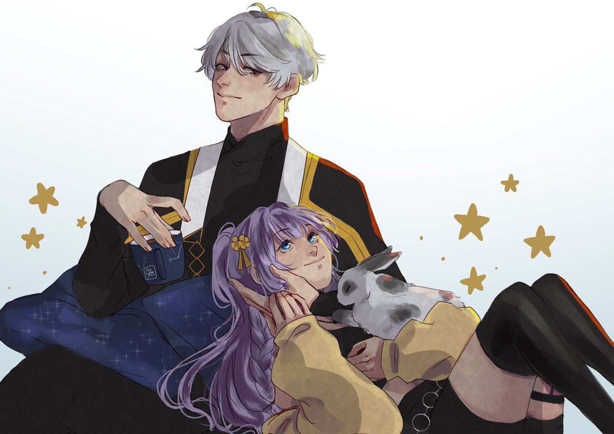 ⚠️ MC Aly X Solomon Happy birthday to me! Meet Jugoya! A rabbit that is Solomon’s birthday gift for Aly! 🤍🤍 十五夜を紹介します!ソロモンからMCへの誕生日プレゼントであるウサギ!2年ぶり! 🤍 (Art by @madkiryuu tysm 🤍) #obeymefanart #obeymemc #obeymesolomon #obeyme #おべいみー