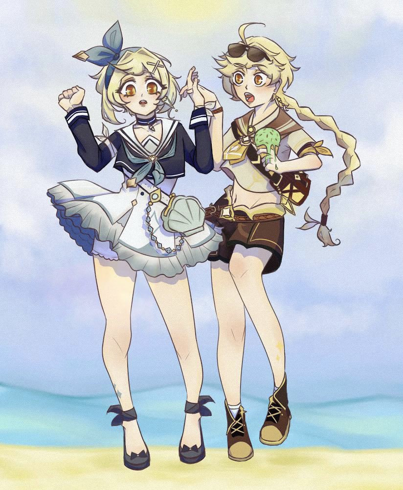 Summer Twins ☀️ outfit design credits to: soyventilatte #Genshinlmpact #genshinimpactfanart #Lumine #Aether