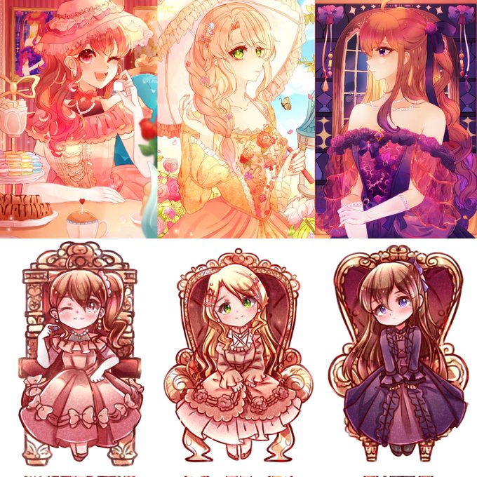 Oc Royalty AU has completed 🫶 Bottom is 2019 ver.~ Who's your fav?~ 🎀Emma 🌷Azami 💜Emily #artidn #ArtistOnTwitter #improvement #illustration #ibispaint