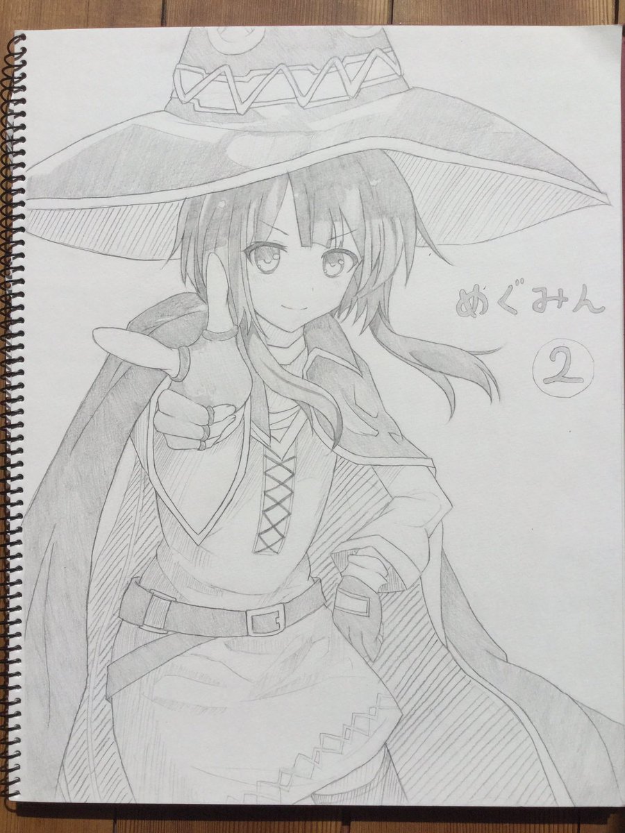 #このすば #めぐみん #イラスト #絵描きさんと繋がりたい #アナログイラスト #RTした人全員フォローする コロナ対策で引き篭もってるから勉強か絵描くしかないな〜。 あと動画、ゲーム、テレビ、筋トレとか………あれ、意外とやる事ある? と思いながら描いためぐみんです。 今回は2巻