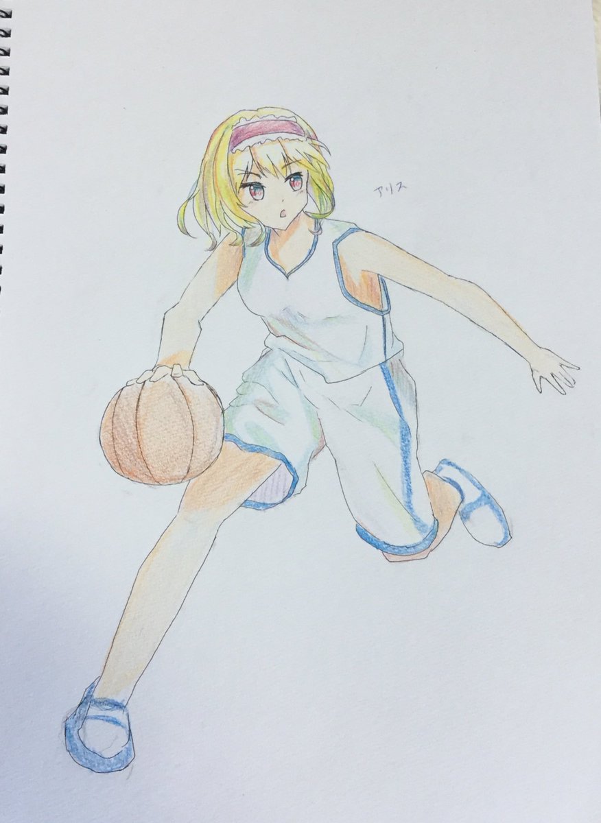 バスケしたくて堪んないから絵にした(落書き) アリスがバスケしてたらカッコいいだろおな #イラスト #東方project #アリス・マーガトロイド #バスケ #絵描きさんと繋がりたい #イオフィエル
