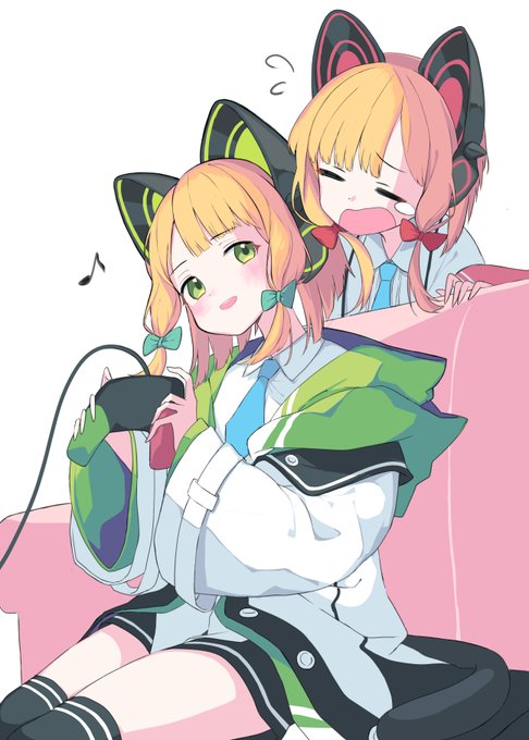 「おねがいだからワタシにもやらせてよー!ミドリのイジワル!!」 「『残機減ったら交代ね!』って言いだしたのお姉ちゃんじゃん」 #ブルアカ #ブルアカイラスト部
