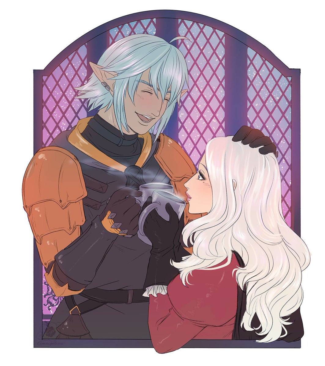 42 116 Haurchefant and Asri ☕️ Art trade with the lovely @/asrikins! #FFXIV #FFXIVART 21/06/04 20:59