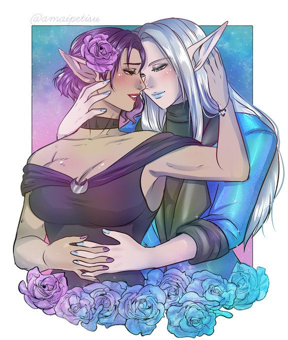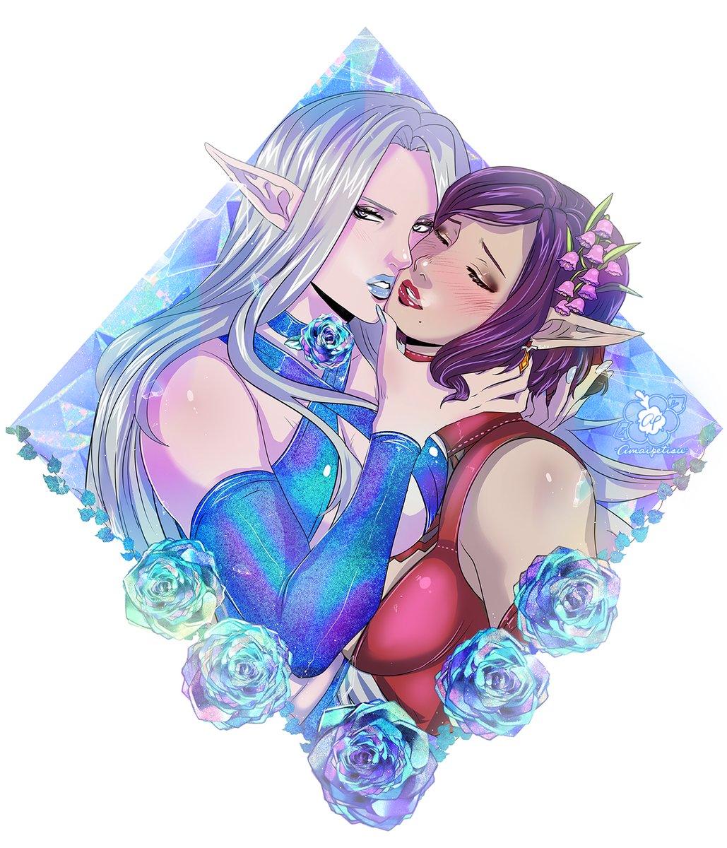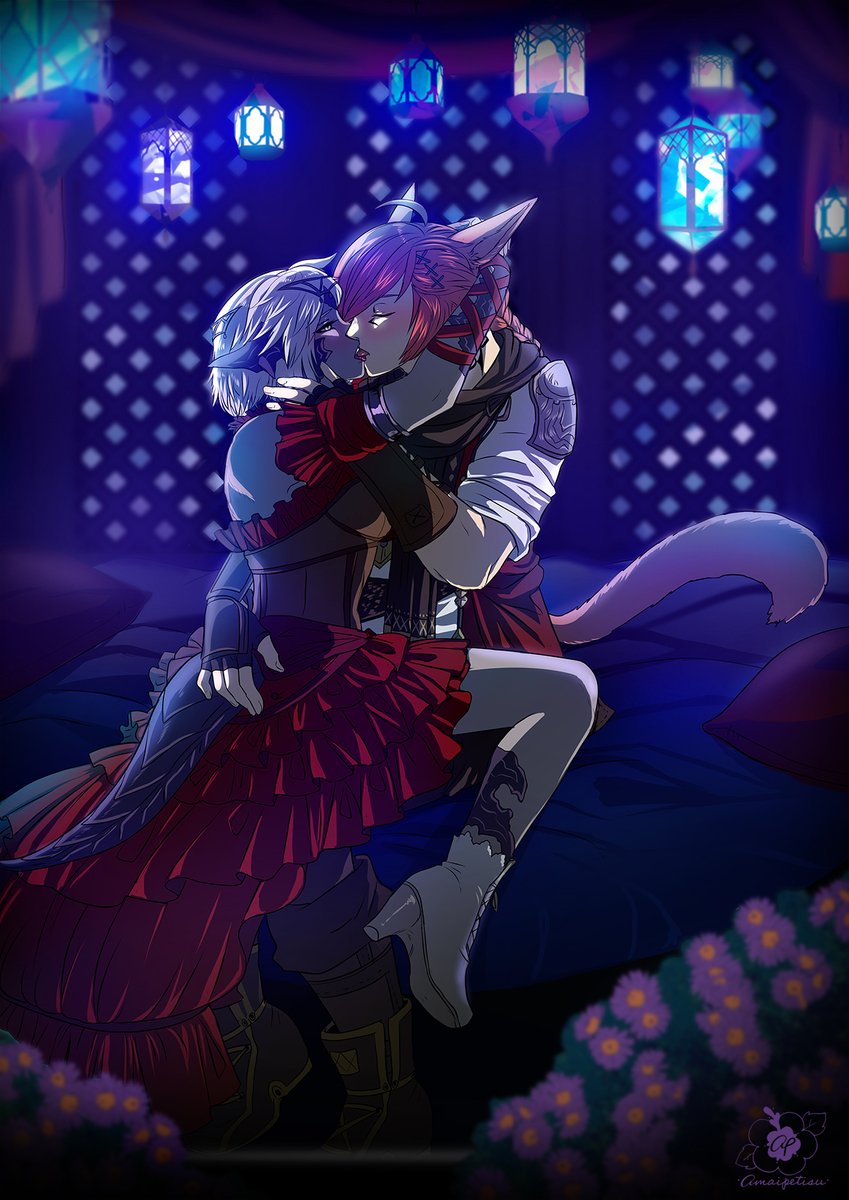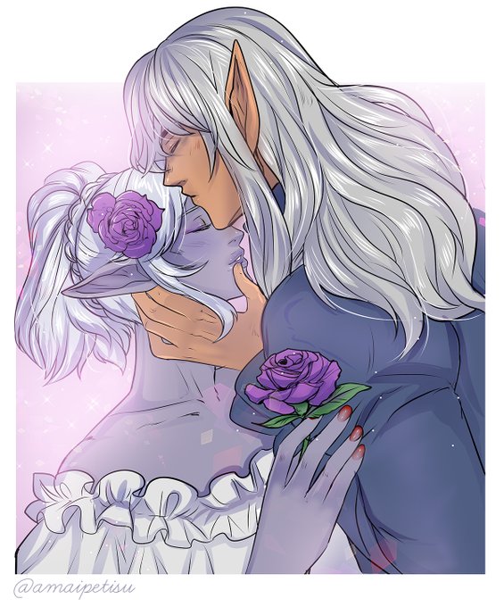 Valentine comm #6 for Celes! Even more elezen! Plus ysayle!!💜💙 #FFXIV #FFXIVART