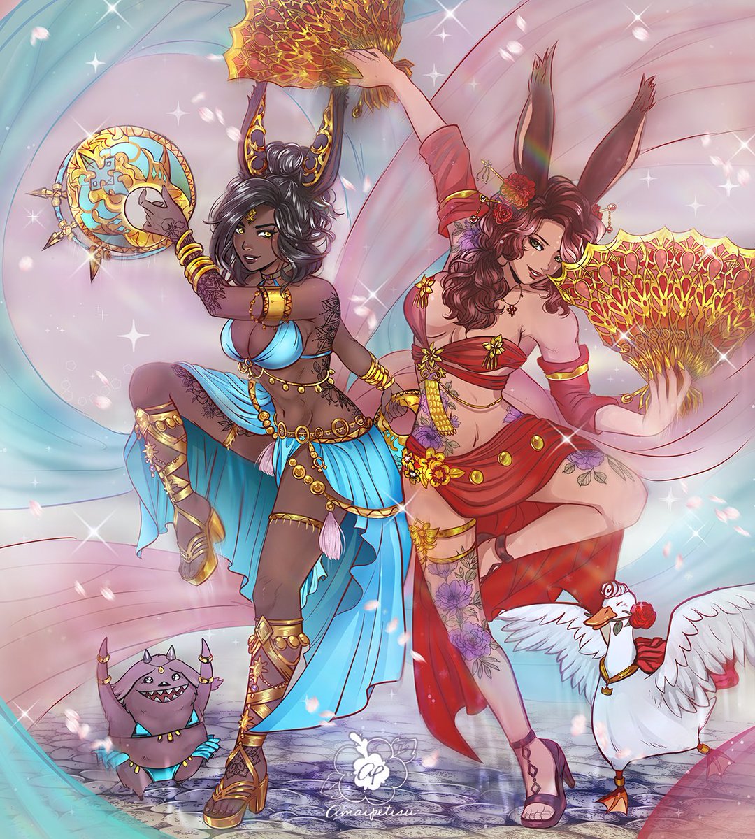 Work for Thunder and Chimes! 💃 I loved these ladies and their little custom minions. #FFXIV #FF14 #FFXIVART 💙