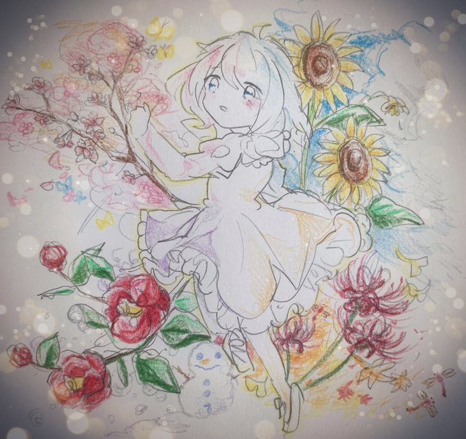 15 33 色鉛筆落書き。 "4 seasons" 22/09/26 12:53
