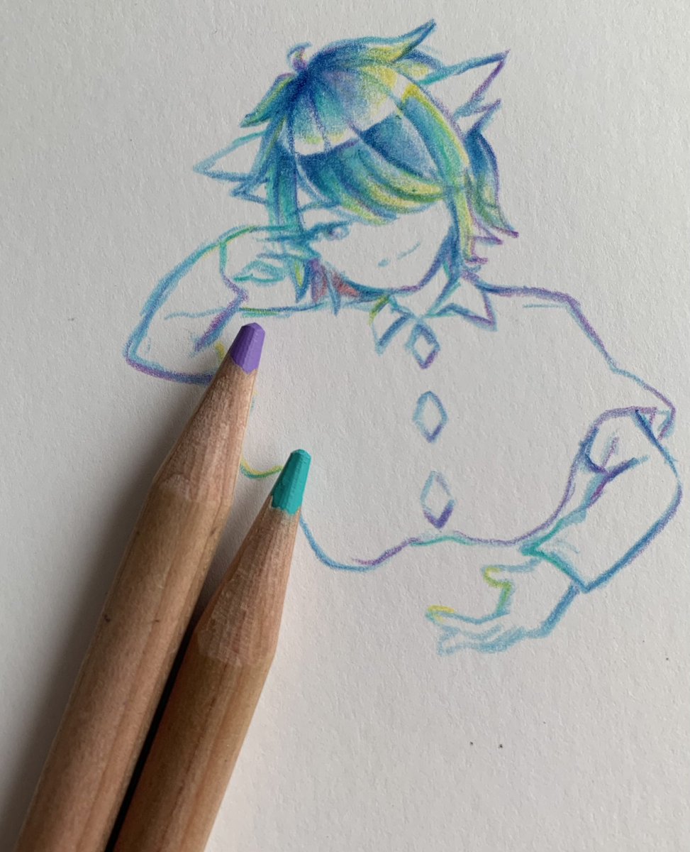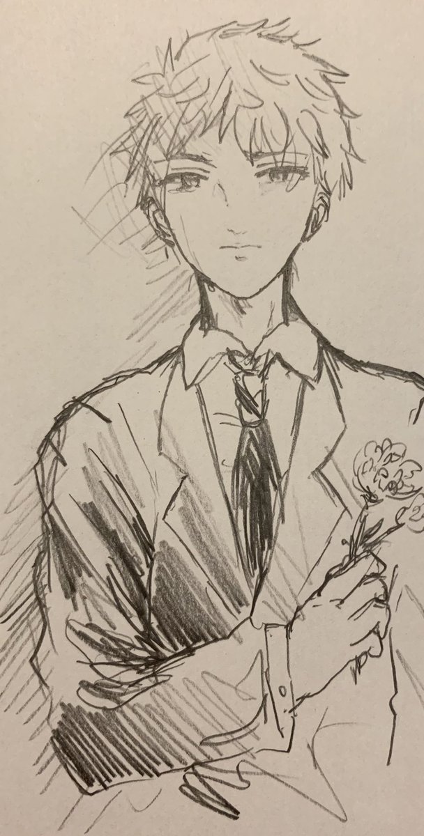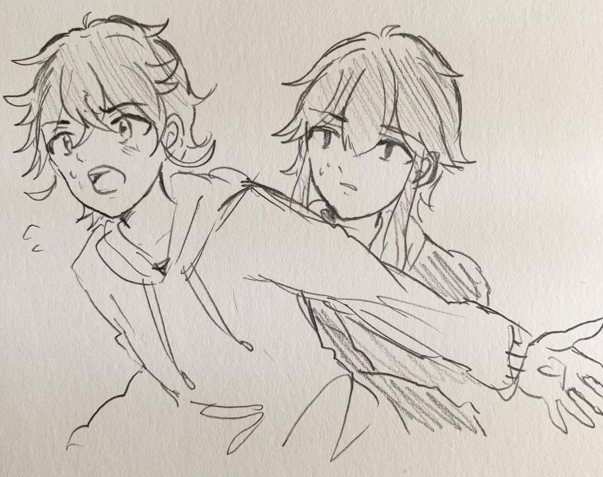 昔参加してた企画生まれの男子を久しぶりに落書きしたもの。 (2枚目はなんか昔かいたやつのセルフリメイク)