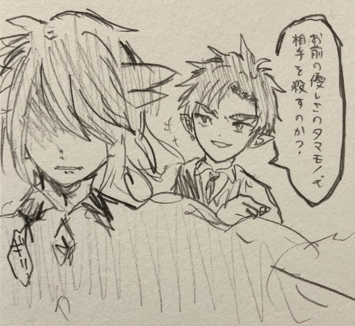 ちょっとたまらんなあ、と思って落書きしたもの。💎🗡 友情出演でクワバミさん(?) 切羽詰まったすけこまし、レアいなあ〜(他人事) twitter.com/sizunobot/stat…