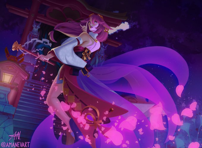 So I've been working on a Illustration of Yae Miko 🌸 is not finished yet but here have some spoilers. Hope y'all good luck with your pulls today 💜 #yaemiko #yaemikofanart #genshinimpactfanart