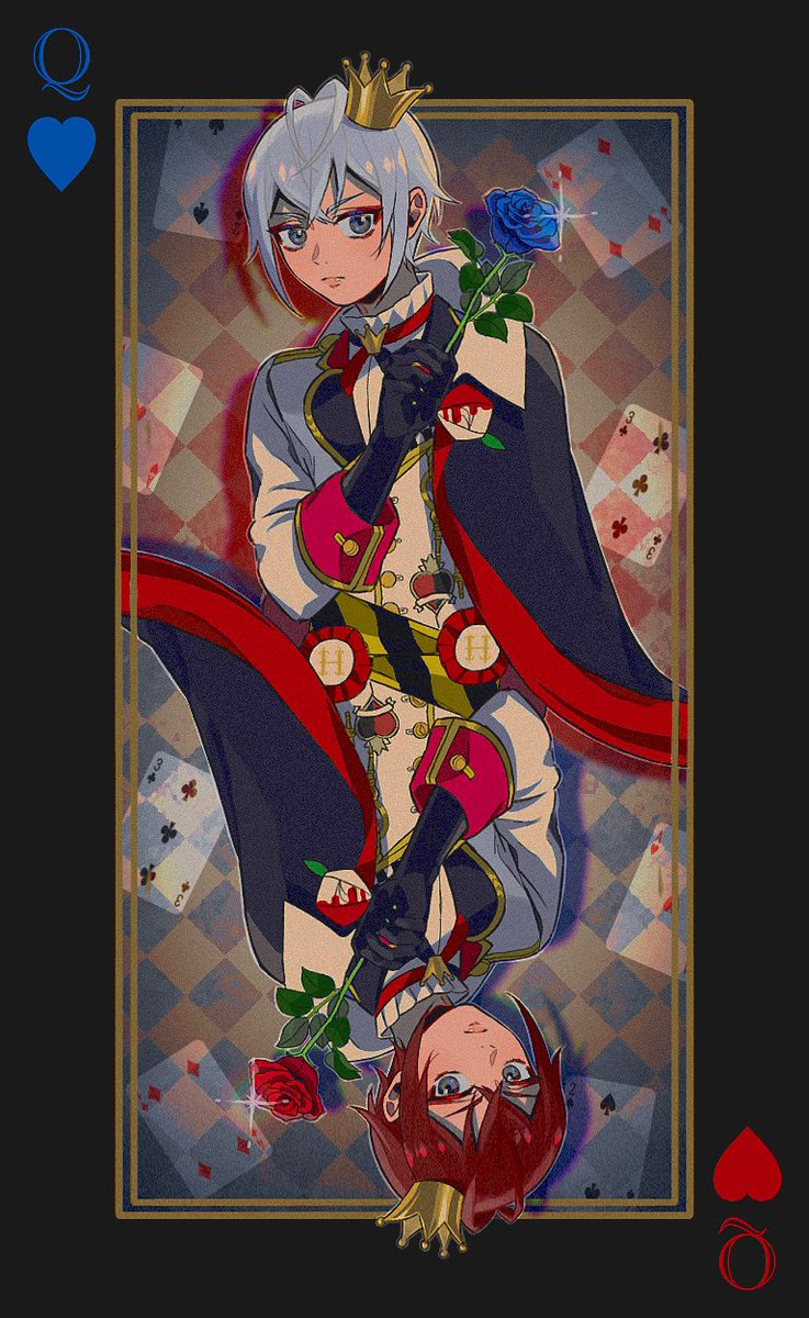 9 33 #エース・トラッポラ #ツイステファンアート ※♡スートなし、寮服若干妄想 🃏♥️👑ハートの女王👑♥️🃏 22/12/04 10:32
