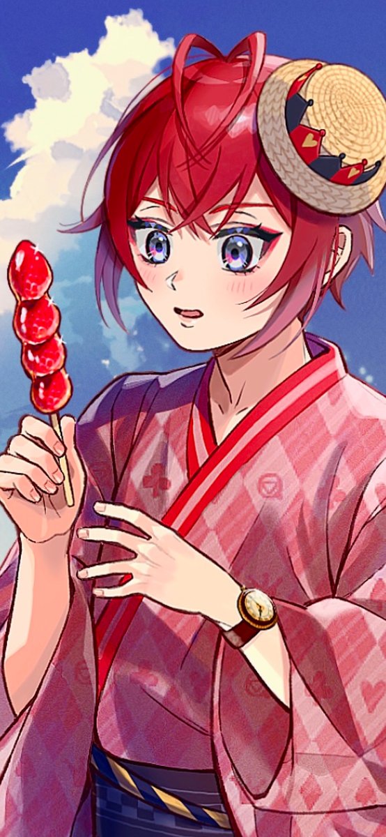 28 145 #リドル・ローズハート #ツイステファンアート (※浴衣妄想) 🍓🌹浴衣+いちご飴🌹🍓 浴衣絶対似合うと思い描きました‼️ 22/09/10 15:29