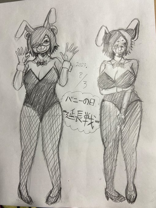 昨日、雑に消化してしまったので バニーの日を延長してみました。 とはいえイラストにするわけでもなくあくまで全身を描くだけですが… うーむ…キサラちゃん…足太いか…? #夏の創作クラスタフォロー祭り #絵描きさんと繋がりたい #毎日リッタちゃん