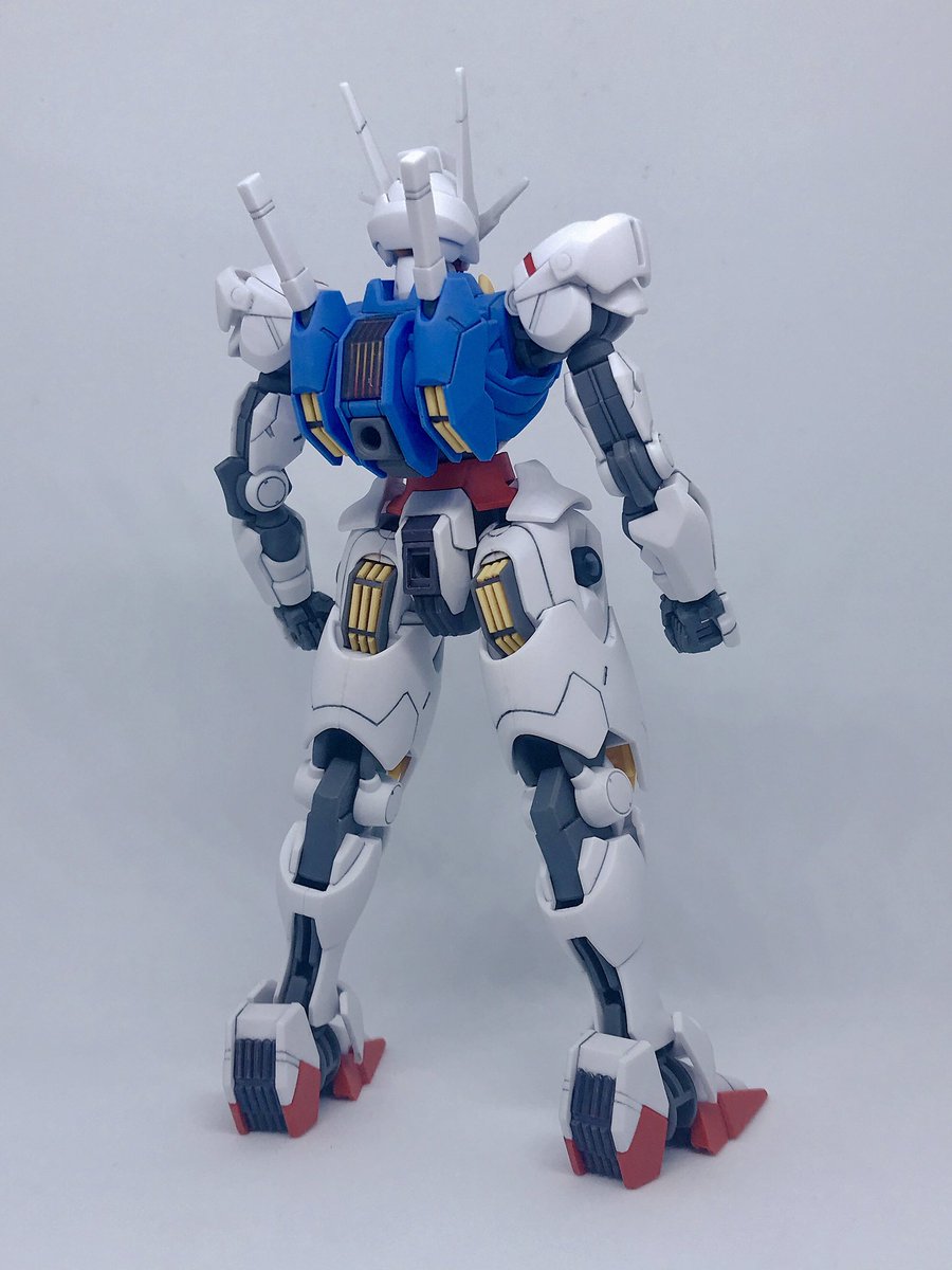 レヴェルノヴァ高機動型 背部、腰部、肩部合わせて合計8基のスラスターの設置 背部の安定翼、腰部のフェアリングによる飛行能力と機動性、運動性が格段に増加している他、宙間戦闘も可能 BL、グレネード、シールドが一つになった複合兵装ランサーを主兵装とする #30MM #30MM古代都市戦 #30MMバイロン軍