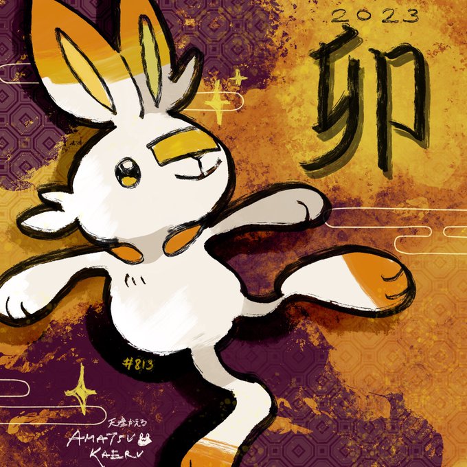 ヒバニー/ Scorbunny あけおめ!! ーー #Pokemon #ポケモン #Art #digitalart #Game #イラスト #アート #HappyNewYear #HappyNewYear2023 #あけおめ