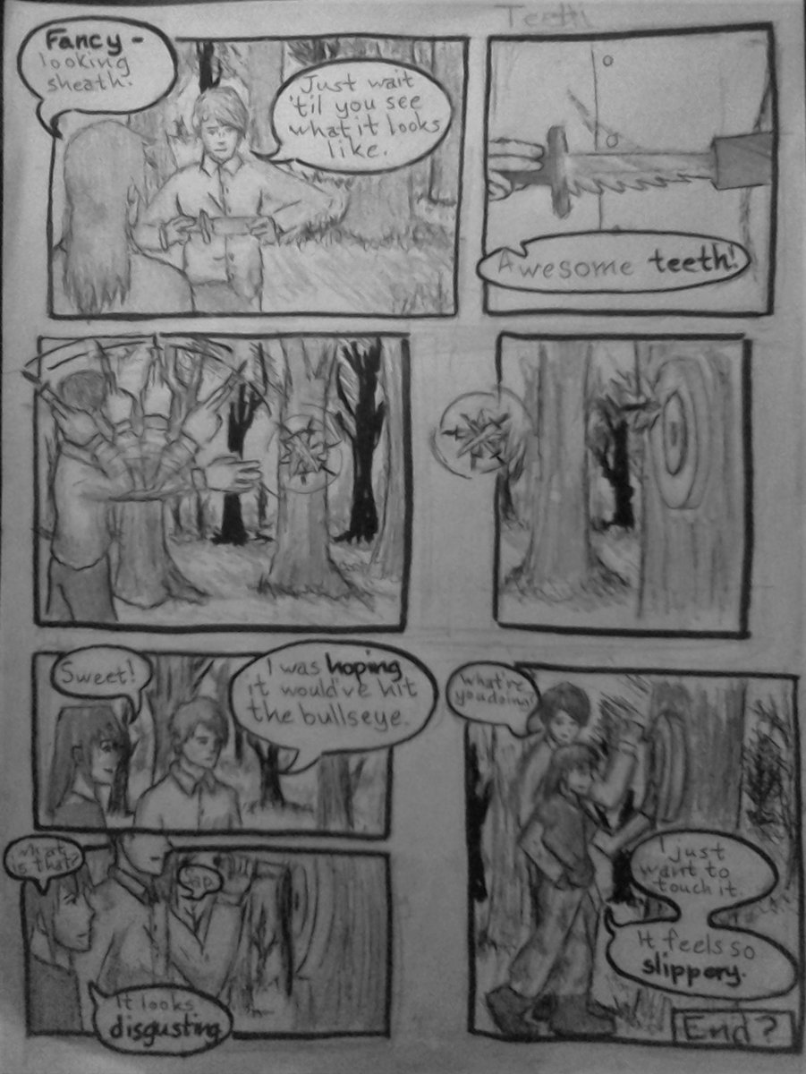 @inktober I made a small comic page from six of the #Inktober2020 prompts. Here's the entire page. Enjoy #Fancy #Teeth #Throw #Hope #Disgusting #Slippery