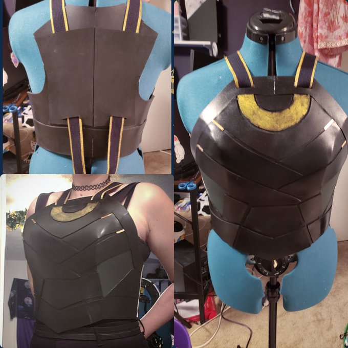 Yayayayyayyayayayayya hyoerfocused and forgot to post WIPs. Still gotta sand/paint the back and add some details but she's wearable!!!! #loki #sylvie #marvelcosplay #lokicosplay #cosplay #cosplaywip #evafoam #metrocon