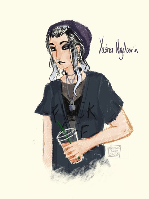 Modern AU Yasha that I sketched up real quick. Haven’t done. Art in weeks . I like this alright. #Criticalrole #criticalrolefanart @TheVulcanSalute