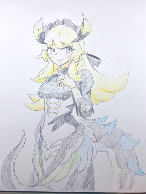 ドラゴンメイドチェリムのらくがき 描いてる途中なぜか手の震えが… #遊戯王OCG #ドラゴンメイド