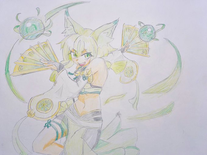 動きの練習に珠の御巫フゥリらくがき 描いててたのしかったです(小並感) #遊戯王OCG #OCGファンアート